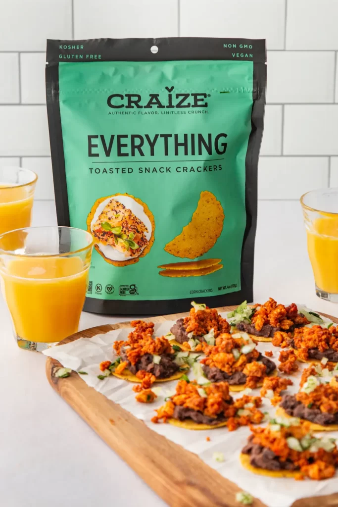 - Assemble the tostadas: Spread a thin layer of refried beans on each corn cracker. Top with a spoonful of the chorizo and egg mixture. Top with the onion and cilantro and enjoy!
