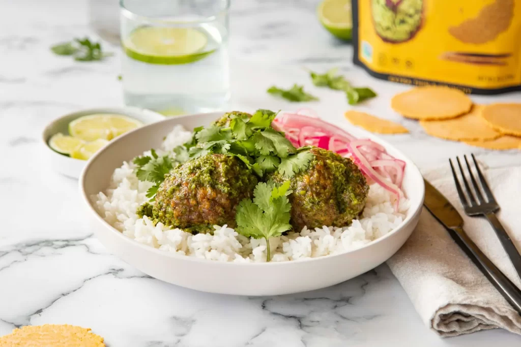 2. Make the mojo sauce by combining all of the ingredients into a blender or food processor. Blend or pulse until smooth. Set aside while you prepare the meatballs.